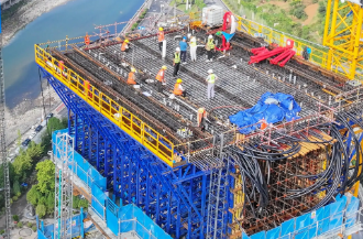 The pouring of anti fall devices for the piers of Renhe Extra Large Bridge safeguards construction safety