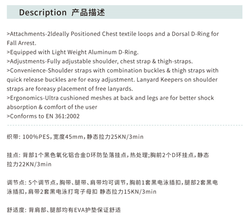 5 Point Full Body Protection Safety Harness with D-Rings Padding